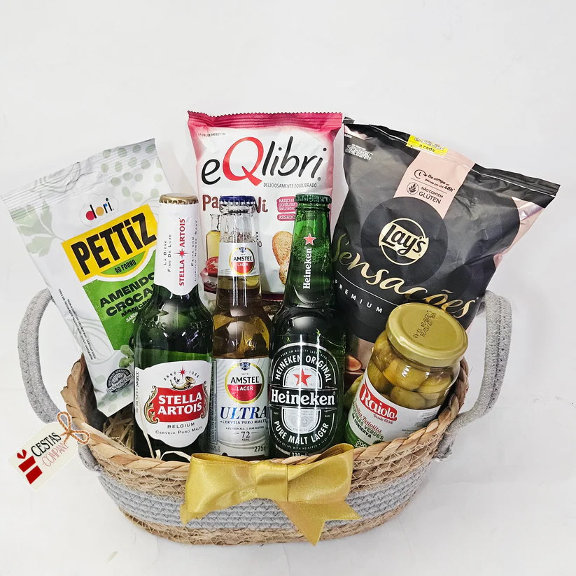 Leve para casa ou surpreenda alguém com nossa Cesta Cervejas e Aperitivos Luxo. Desfrute de uma Heineken refrescante, uma Stella Artois saborosa e uma Michelob Ultra suave, acompanhadas de aperitivos selecionados. Um presente perfeito para qualquer ocasião. Aproveite agora!